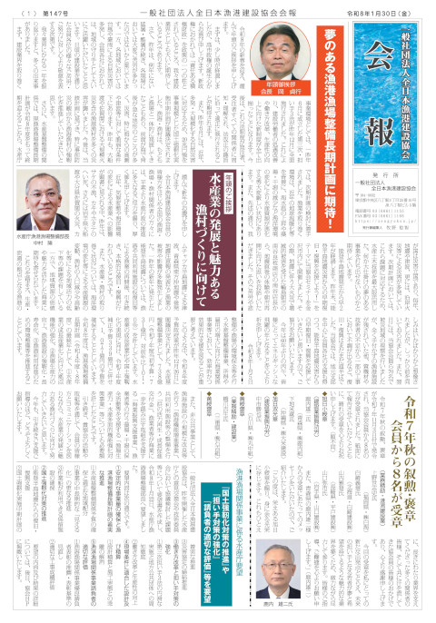 当協会の活動報告や漁港建設業を取り巻く情報の提供とともに、会員間の円滑な情報交換・共有を目的として、5月・7月・1月の年3回発行しています。